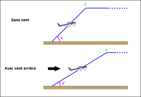 Par contre, la pente sol de montée ( l'angle de montée X' ) est diminué, parce que vous aurez une vitesse sol plus importante.